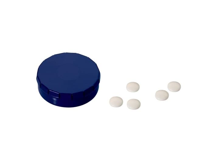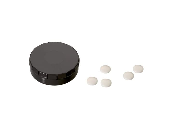Met één klik is het pepermuntdoosje te openen en met een simpele handbeweging is het doosje te sluiten. Groot drukoppervlak en geschikt voor full-colour digitaal druk. Niet suikervrij. Gevuld gevuld met twaalf gram Europese pepermunt.