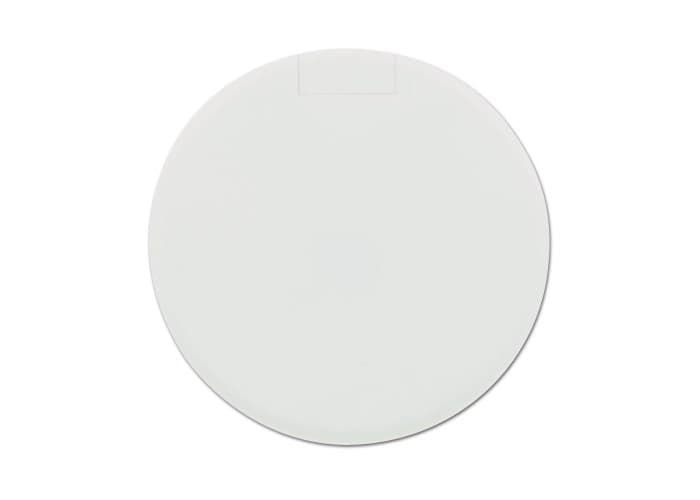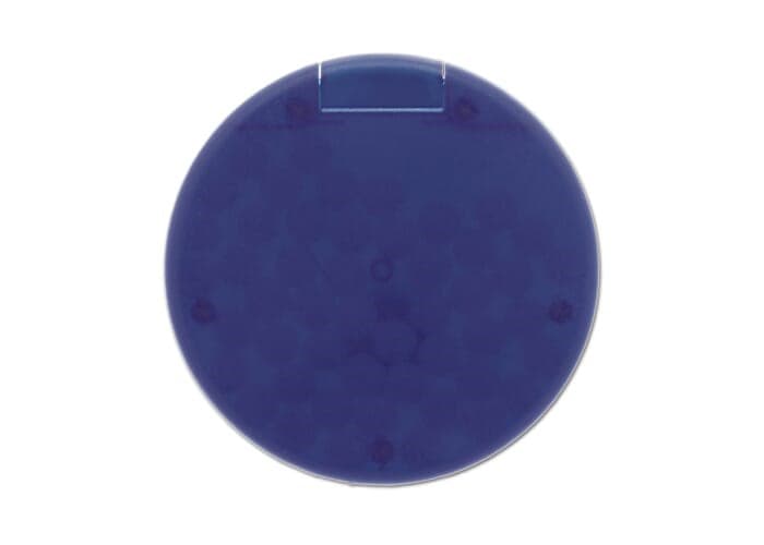 Rond en plat pepermuntdoosje. In gekleurd transparant of hardcolour wit. Inhoud: Circa 6,5 gram suikervrije pepermuntjes.