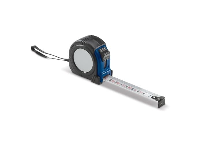 Rolmaat met een meetbereik van drie meter en een wit meetlint. Eenvoudig mee te nemen dankzij de broekklem en is nauwkeurig door de haak aan het begin van het meetlint.