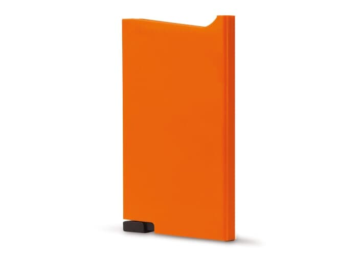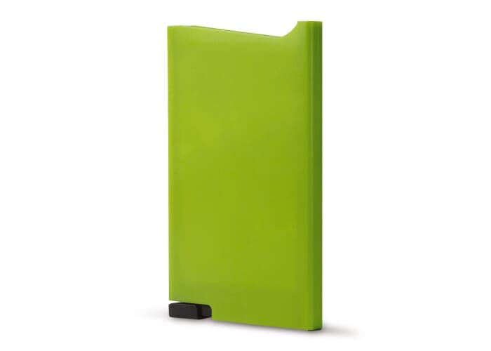 Uniek design kunststof kaarthouder om (bank)passen te beschermen tegen RFID skimming. Druk op de knop en tot vijf kaarten komen getrapt uit de houder.