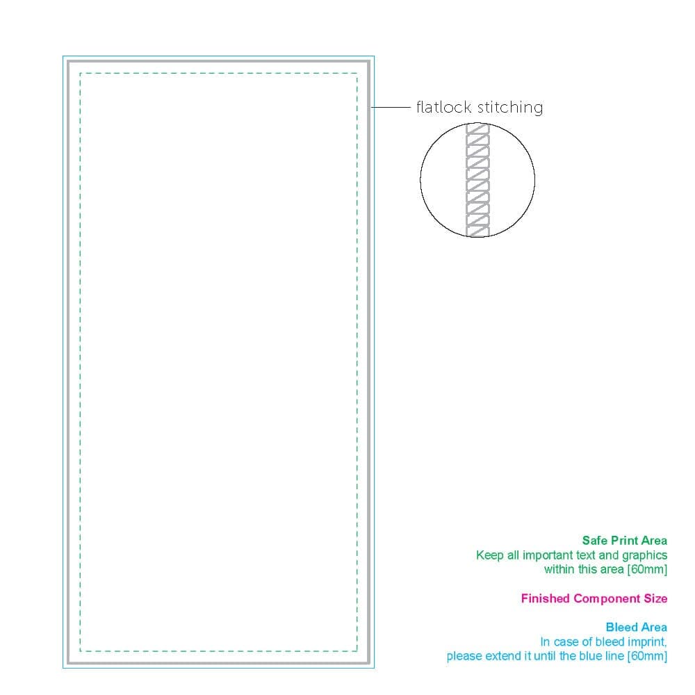 Outdoor handdoek gemaakt van sneldrogend microfiber (200g/m², 700x1400mm). Inclusief een custom-made full-colour print op één zijde. Optioneel kan de andere zijde ook bedrukt worden. Ook de kleur van de zoom is aan te passen. De handdoek wordt met een tasje geleverd.
