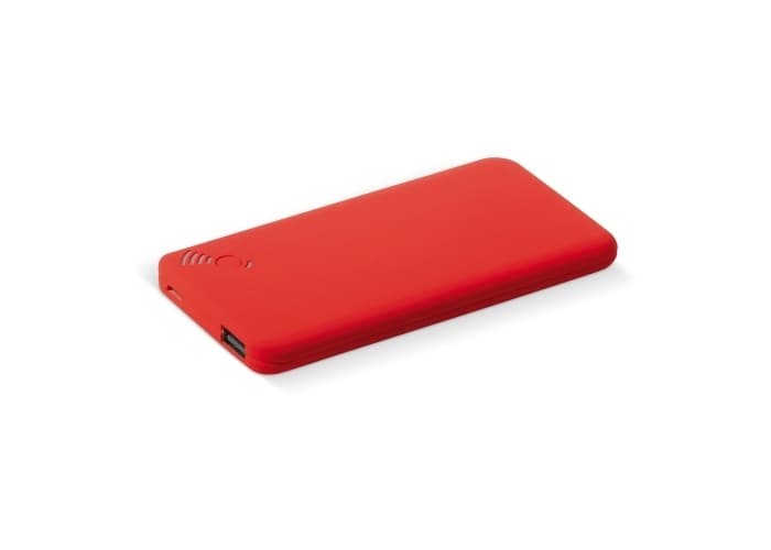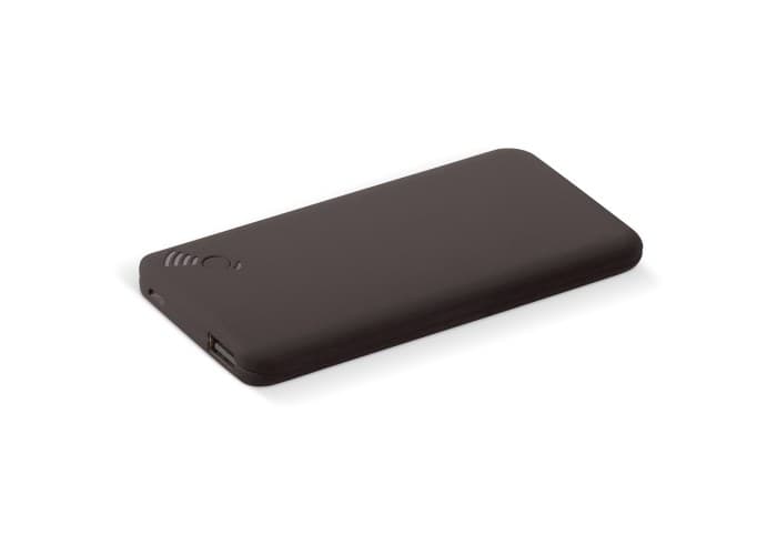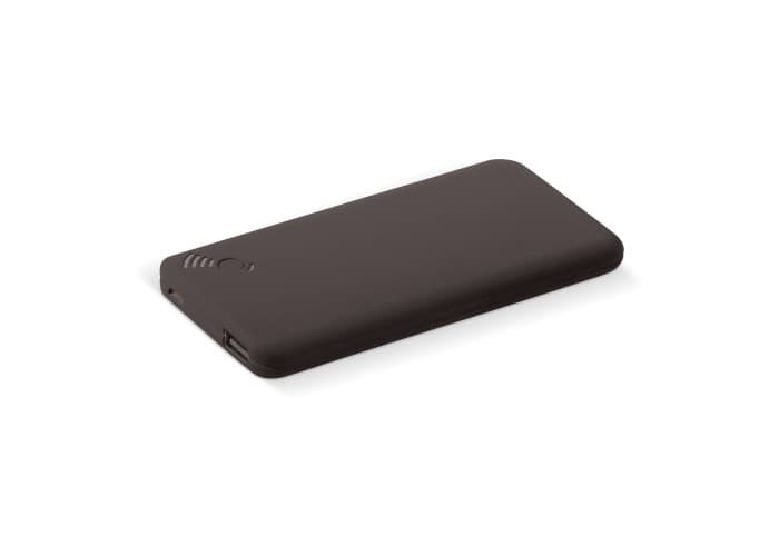 Platte draadloze powerbank bedrukken met rubberized finish en een capaciteit van 4.000mAh. Door de zuignappen op de powerbank blijft de telefoon verbonden met het draadloos laadgebied. Er kan ook gebruik worden gemaakt van de bijgeleverde kabel om de telefoon op te laden.
