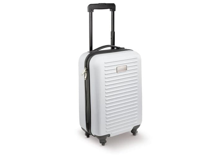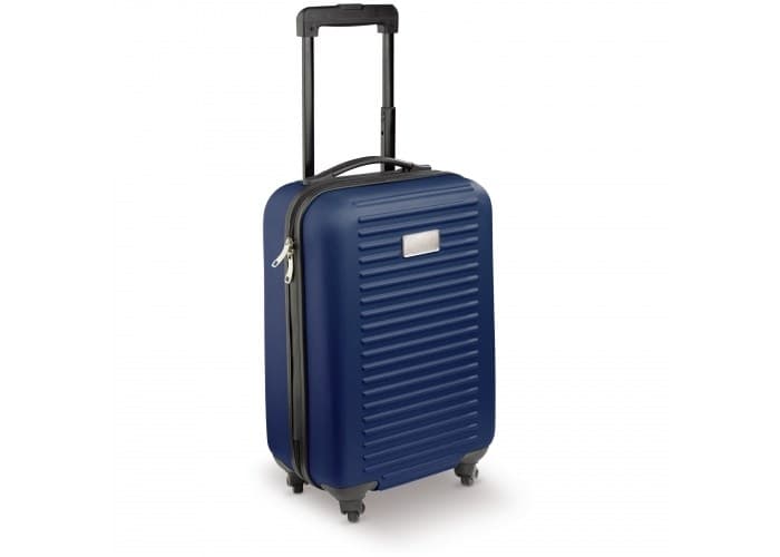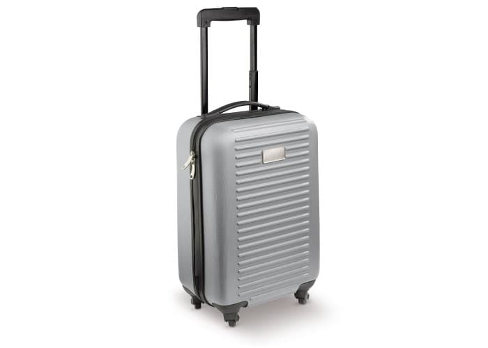 Cabin size trolley met één compartiment met grijze voering en een dubbele rits. De koffer heeft vier zwenkwieltjes en een metalen plaatje voor een bedrukking. Per stuk in doos verpakt.
