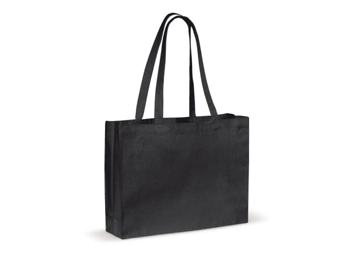 Ideale schoudertas van een zware kwaliteit katoen voor promotionele activiteiten. Door de zij- en onderkant is deze tas extra ruim en met de OEKO-TEX® certificering een verantwoorde keuze. Perfect voor duurzame tassen bedrukken.