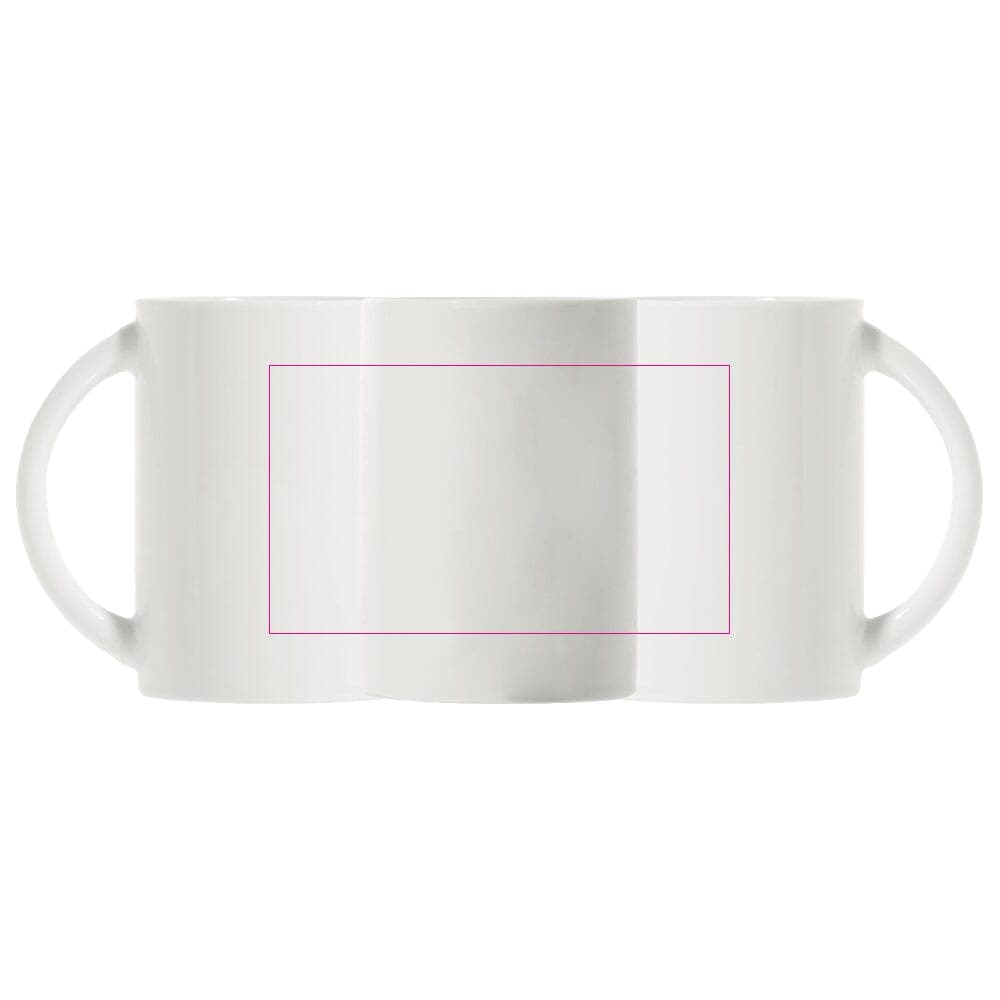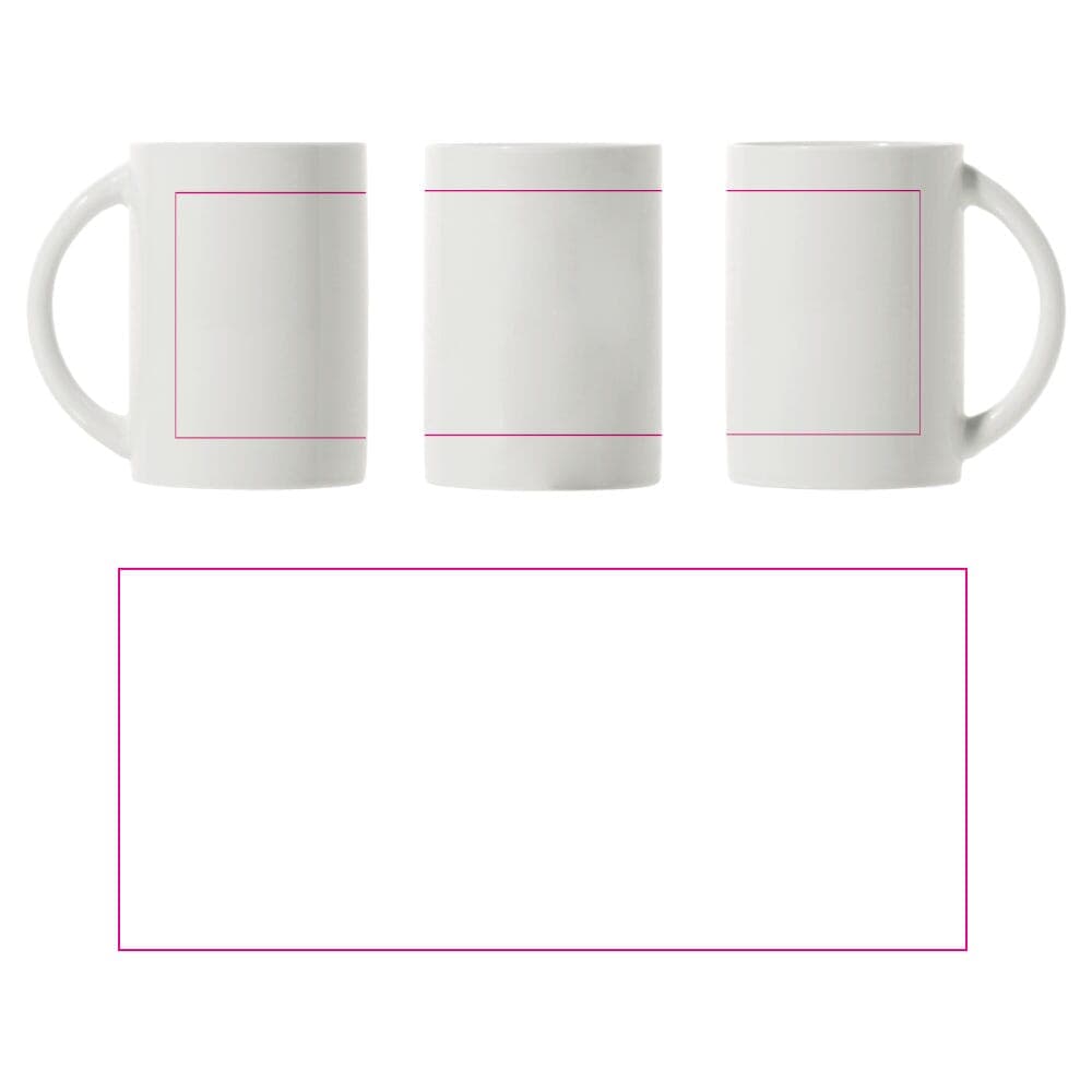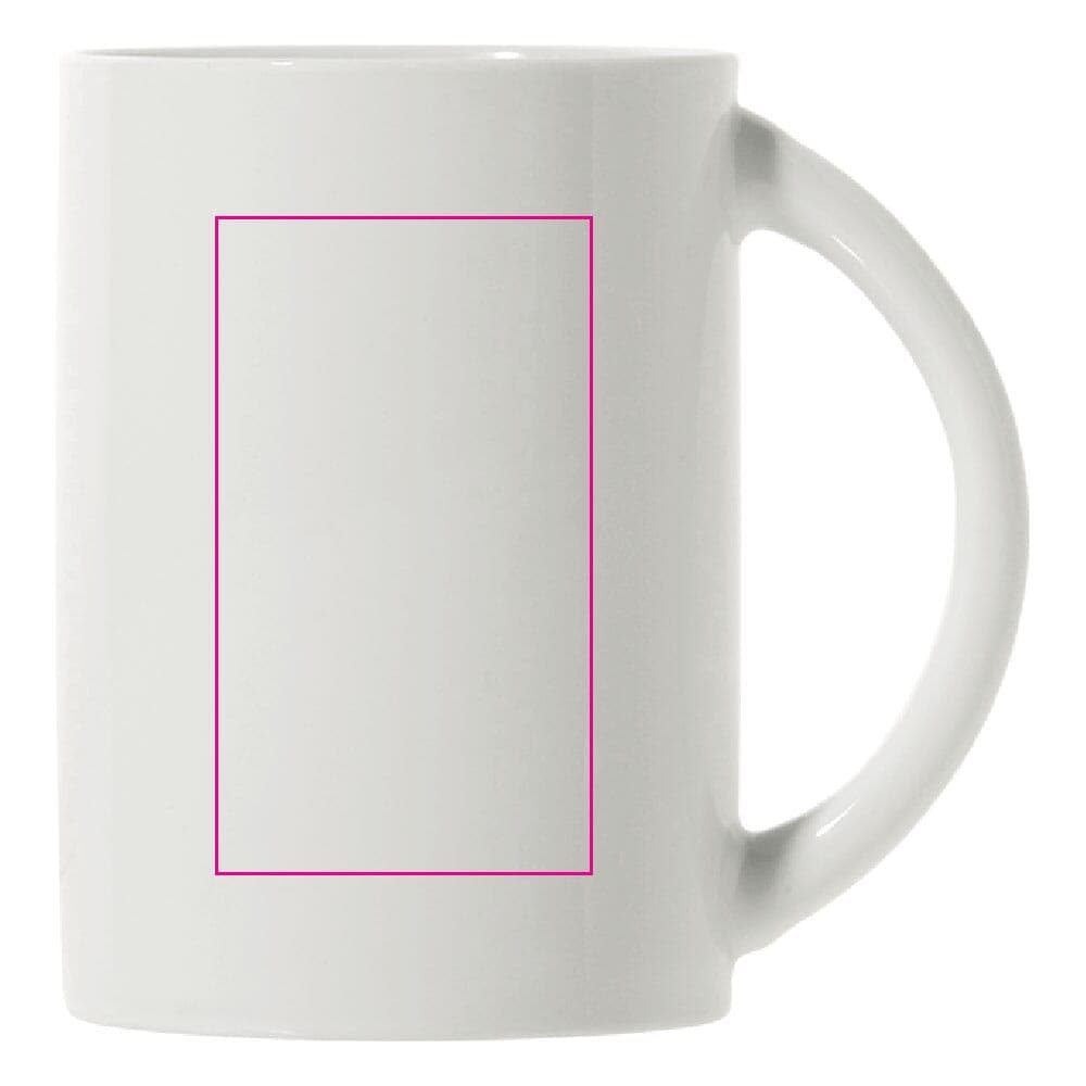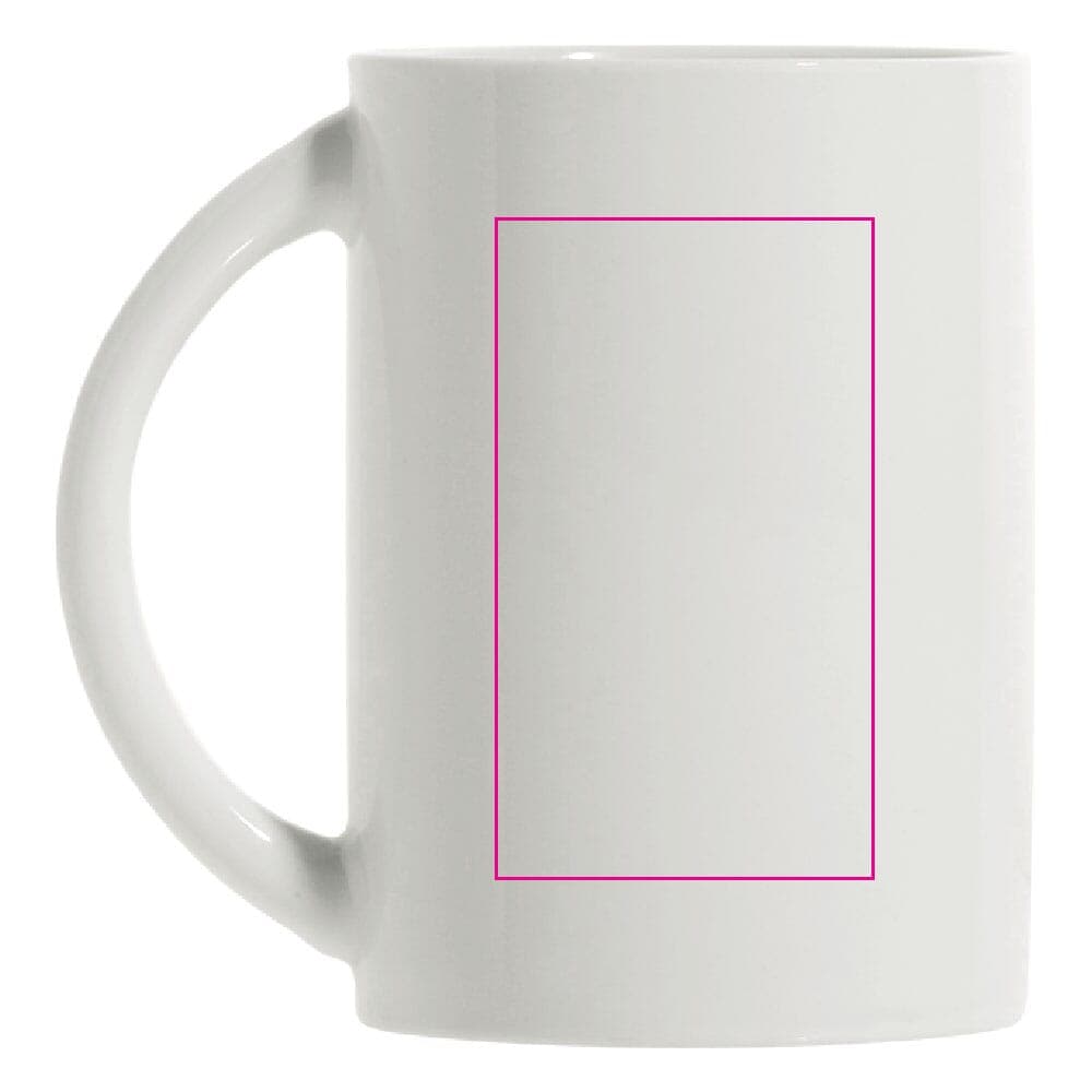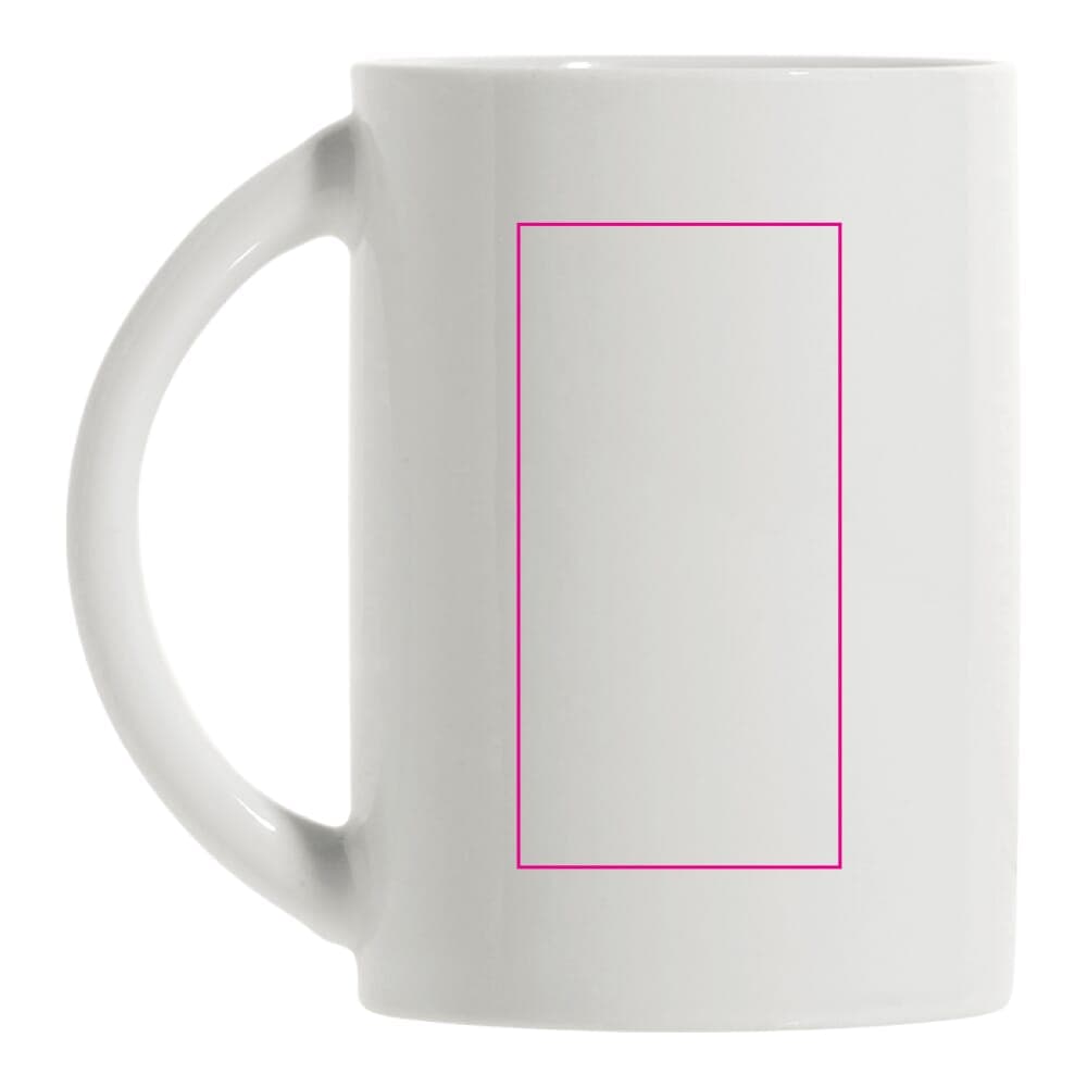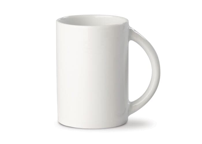 Porseleinen witte mok. Hoog en slank model met groot oor.