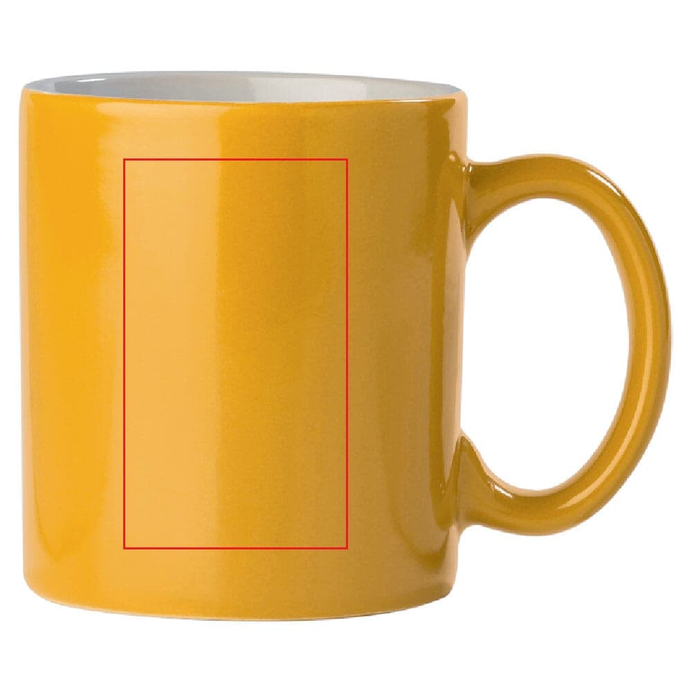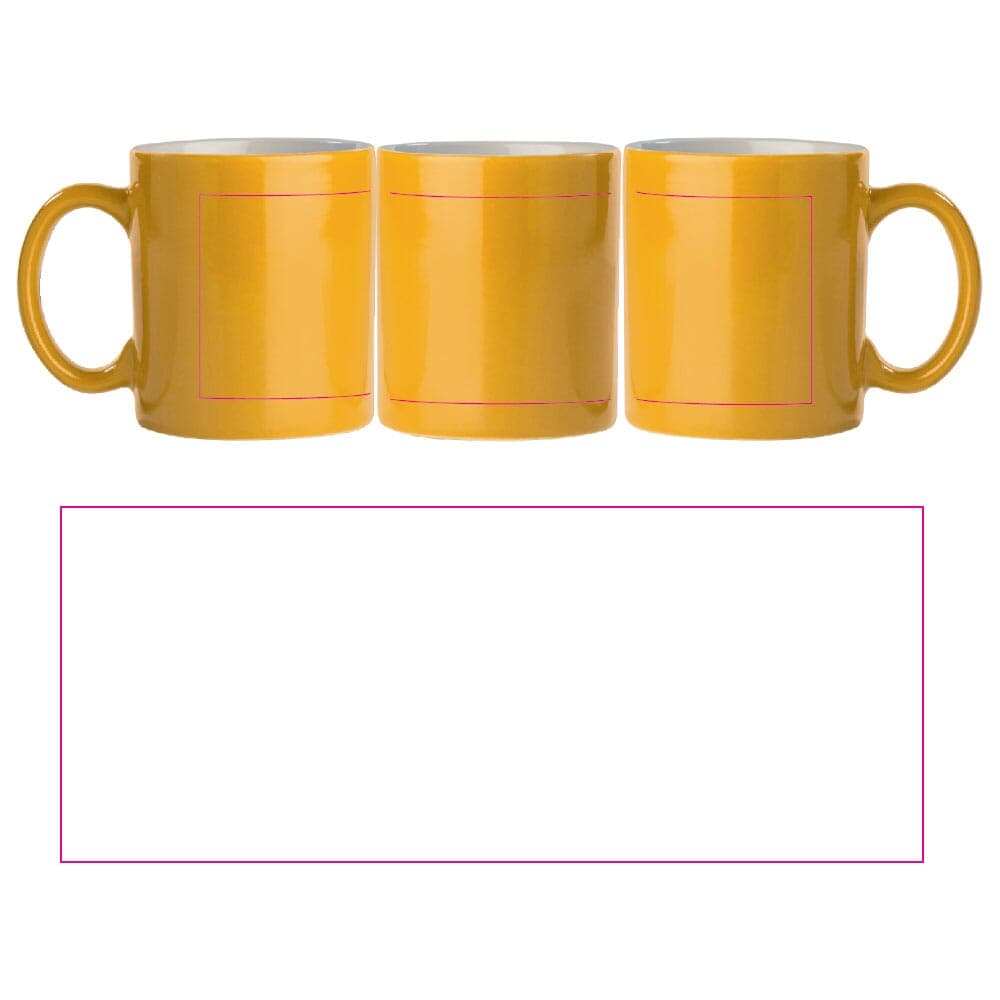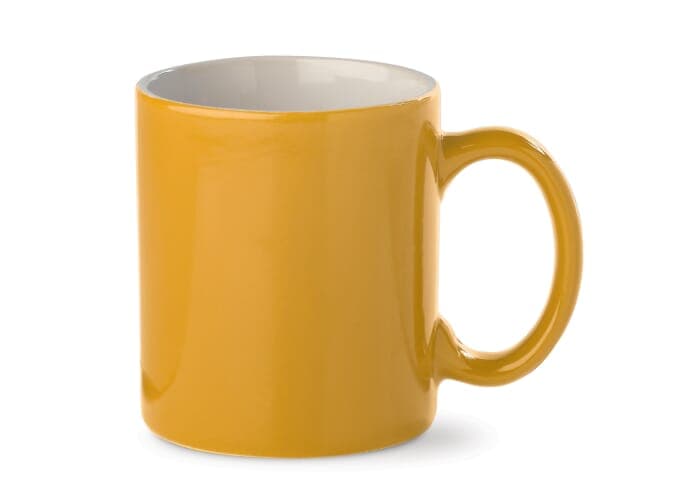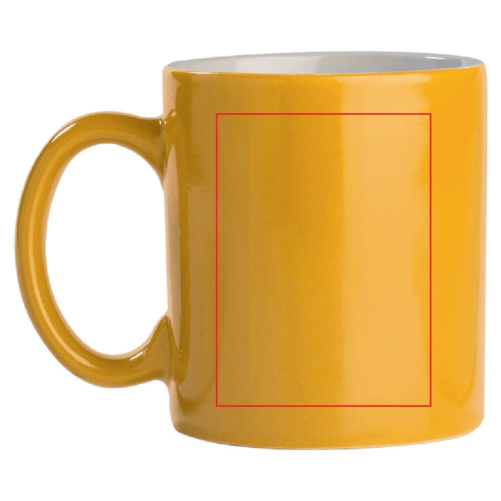 Gekleurde aardewerken mok. Groot drukoppervlak. Ideaal voor mokken bedrukken.