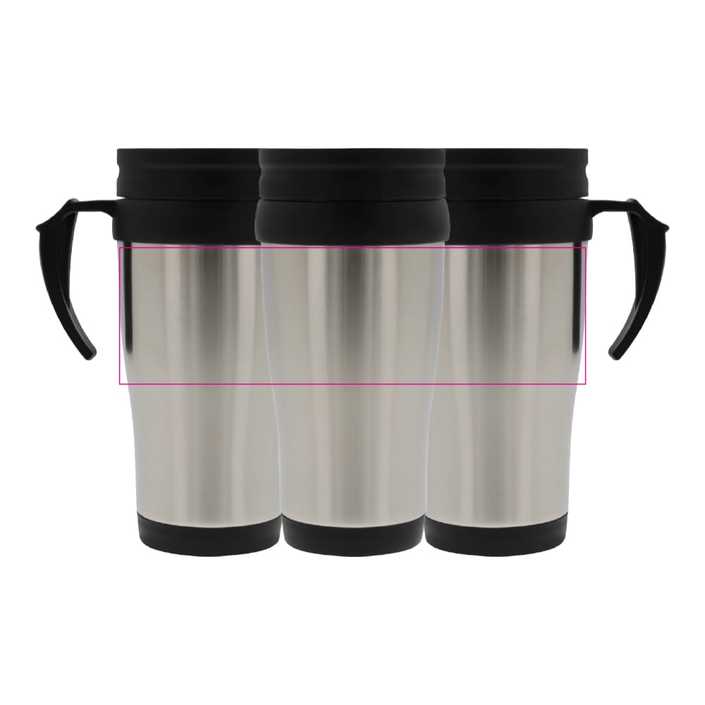 Koffiebeker geschikt voor warme dranken. Metaal van buiten en kunststof van binnen. Wordt in geschenkverpakking geleverd, ideaal voor thermosbekers bedrukken!