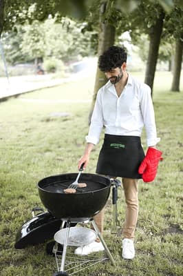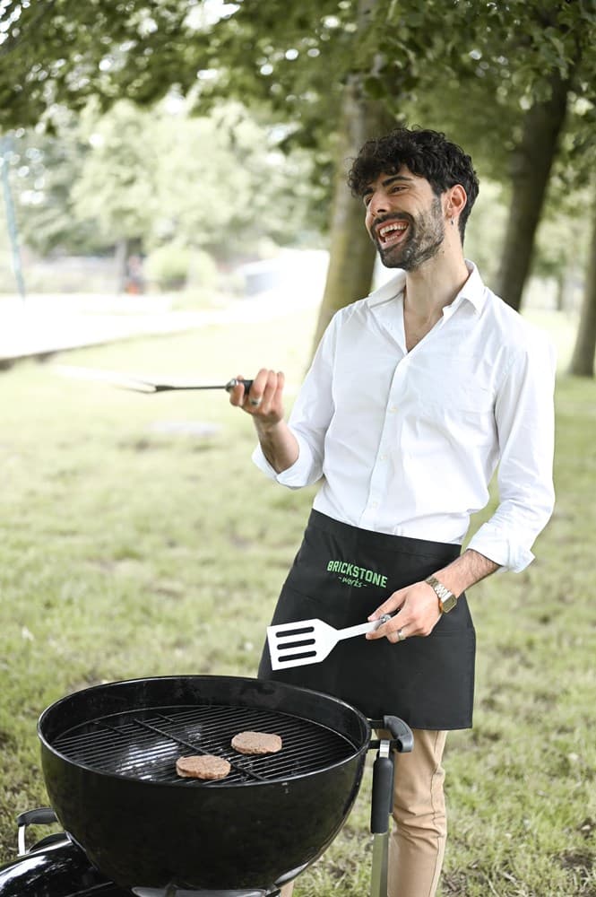 Kleine sloof tot op de knieën zodat je voeten vrij zijn en je niet wordt afgeremd als je met volle borden heen en weer rent door het restaurant. Dit keukenschort beschermt je kleding tegen alle vieze etensvlekken. Reactief geverfd en dus blijft de kleur intact wasbeurt na wasbeurt.