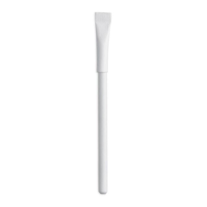Balpen met dop. Volledig gemaakt van gerecycled papier, met blauwe inkt.