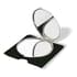Aluminium make-up spiegel, gewoon en vergrotend, met velours etui.