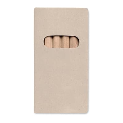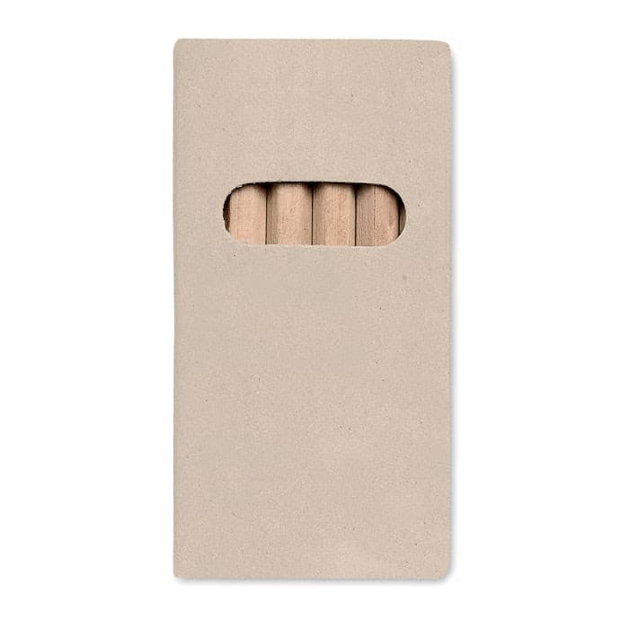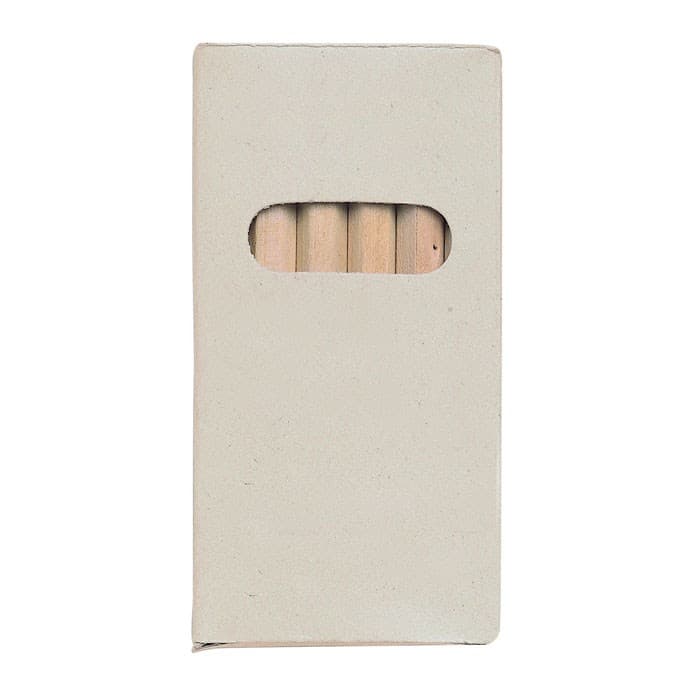 6 Kleurpotloden met opdruk in een kartonnen doosje.