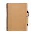 Schrijfblok met 140 blanco pagina's (70 vellen) gerecycled papier, inclusief biologisch afbreekbare en gerecyclede balpen. Blauwe inkt.