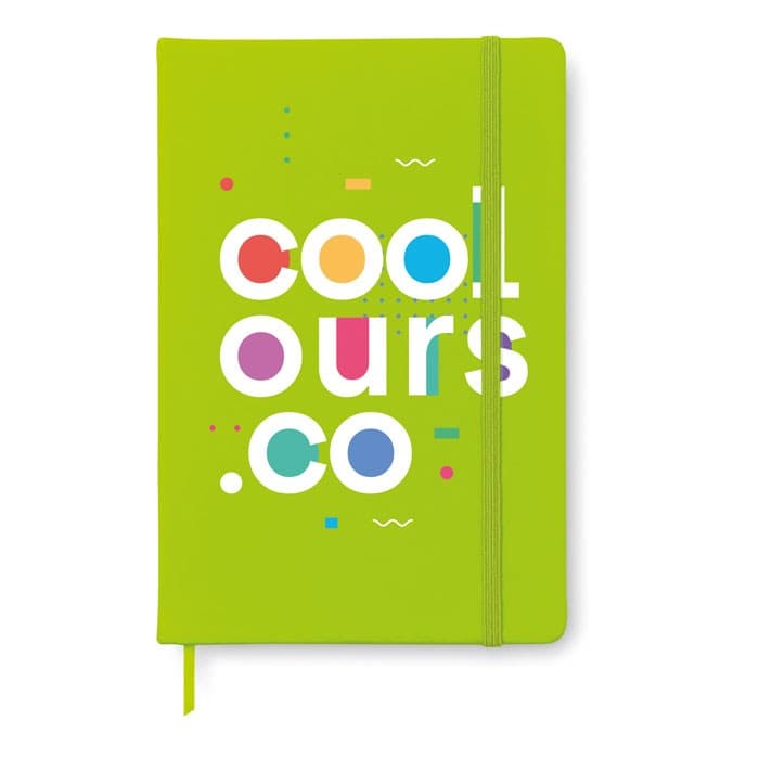A6 notitieboekje met PU cover en 192 pagina's (96 vellen) gelinieerd papier. Inclusief elastische sluiting en bijpassend gekleurd lint. Ideaal voor het bedrukken van notitieboekjes in kleine oplage, perfect voor bedrijfsrelaties of persoonlijke geschenken.