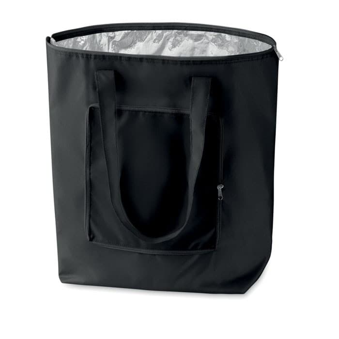 Handig opvouwbare koeltas. 210D polyester, bekleed met aluminiumfolie aan de binnenzijde. Ideaal voor het koel houden van uw etenswaren. Isolatie materiaal: Aluminiumfolie. Capaciteit 13L.