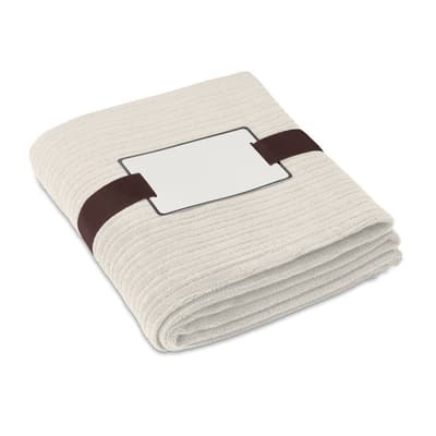 Heerlijke dikke deken van 240 g/m² fleece met een lint met bedrukbaar kaartje. Aangenaam voor een koele avond. Laat hier je fleecedekens bedrukken voor een persoonlijk en warm geschenk!