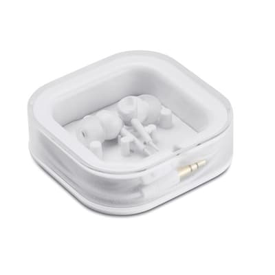 Siliconen oordopjes bedrukken, lengte kabel 120 cm. Verpakt in kunststof doosje, waar het snoer in kan worden opgeborgen. Door het siliconen materiaal worden de geluiden van buitenaf goed geïsoleerd. Inclusief twee extra setjes siliconen dopjes in verschillende maten.
