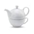 Theeset bestaande uit een theepot (400 ml) en een theekopje van wit keramiek. Geleverd in een zwarte geschenkverpakking.