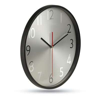 Grote wandklok met glasplaat, aluminium wijzerplaat en wijzers. Perfect voor klokken bedrukken met een logo of boodschap. Exclusief 1 AA batterij.