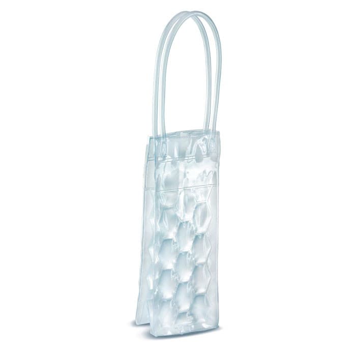 Transparante PVC koeltas voor 1 fles (fles niet inbegrepen). Leg de koeltas in de diepvries voor gebruik.