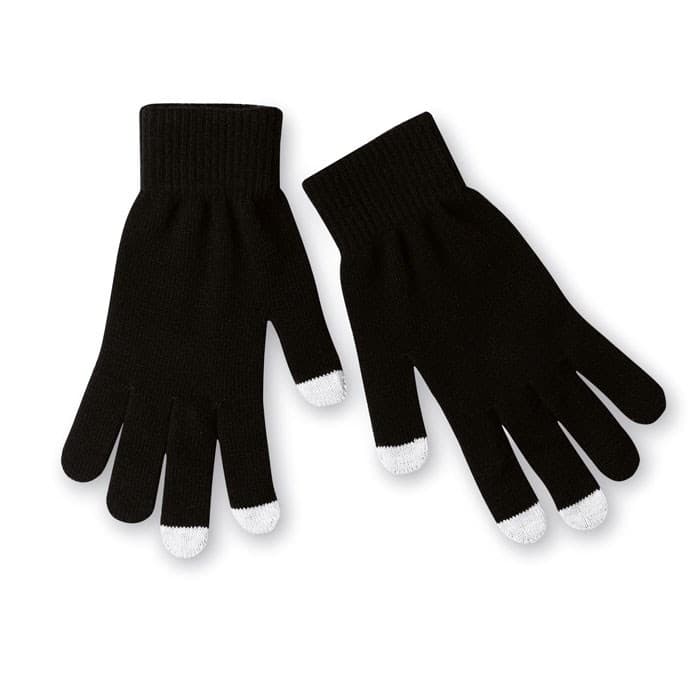 Touchscreen handschoenen voor smartphone, gemaakt van acryl, met 3 vingertoppen voorzien van 0,5% roestvrijstalen vezels. Perfect voor het bedienen van touchscreens terwijl je handen warm blijven. De handschoenen zijn vervaardigd uit 89,5% acryl en 10% spandex, waardoor ze flexibel zijn en de maat kan variëren. Ideaal voor handschoenen bedrukken, zodat je ze kunt personaliseren met een logo of boodschap.