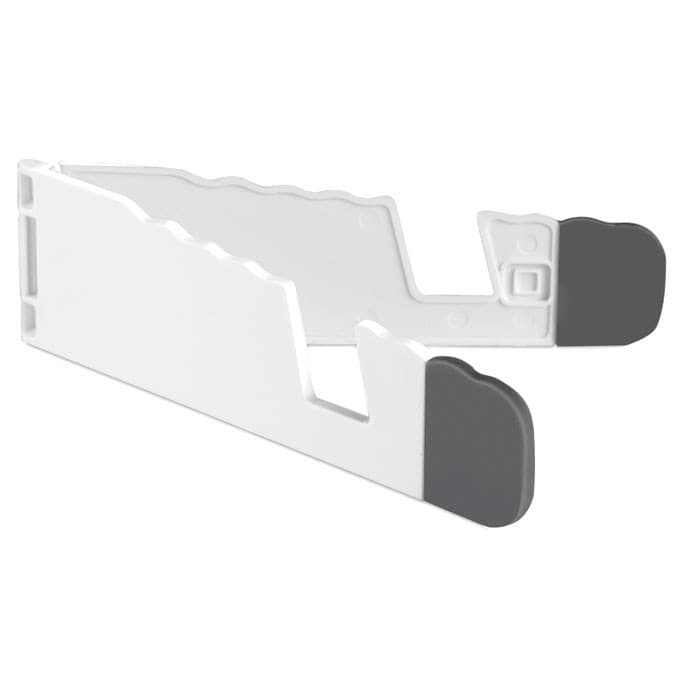Tablet en smartphone houder van wit ABS met grijze, siliconen uiteinden.