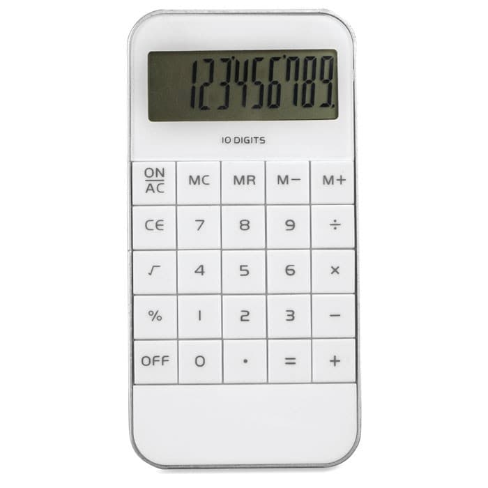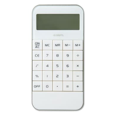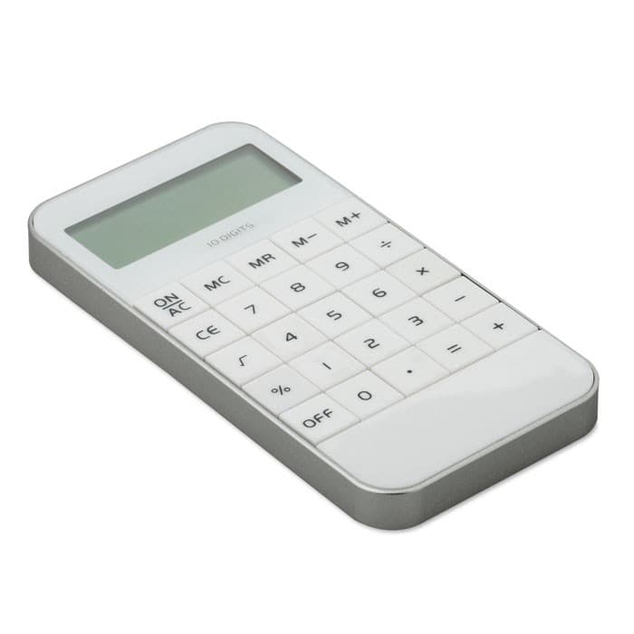 ABS rekenmachine met een 10-cijferig display, in de stijl van een iPhone® 5. Inclusief 1 AG13 batterij.