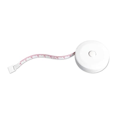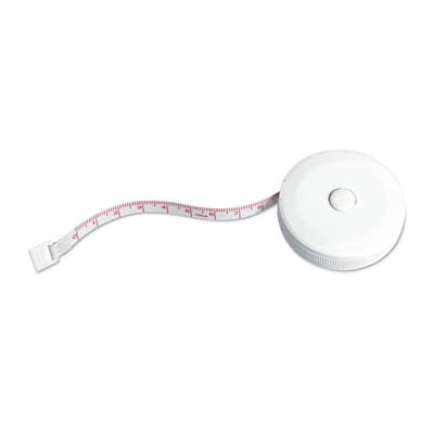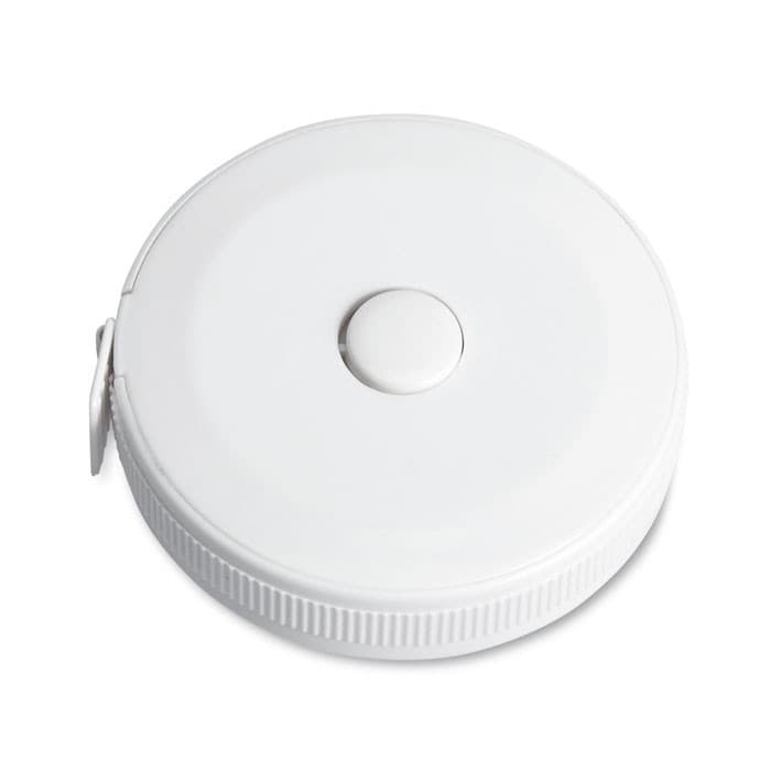 Ronde ABS rolmaat van 1 meter, met knopje om in en uit te rollen. Meet centimeters en inches.
