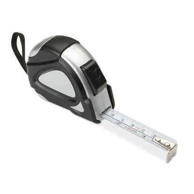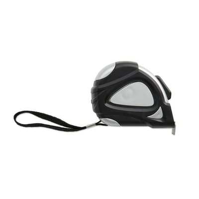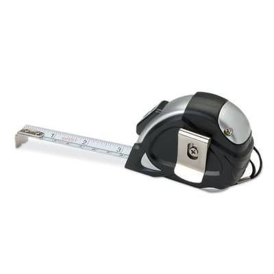 Professionele ABS rolmaat van 3 meter in zilver met zwarte behuizing. Inclusief polsband en glanzend zilverkleurige metalen clip.