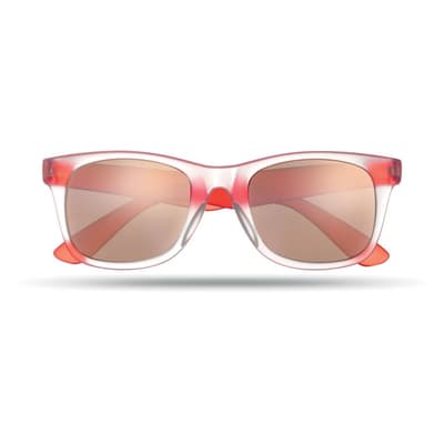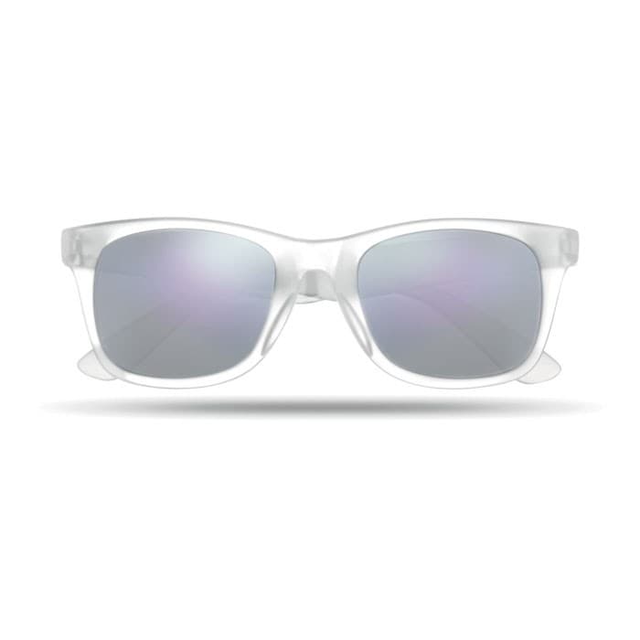 Deze stijlvolle, klassieke zonnebril combineert tijdloze elegantie met een moderne twist door de toevoeging van spiegelglazen en bijpassende pootjes. De zonnebril is niet alleen een modieus accessoire, maar biedt ook essentiële bescherming met UV400 lenzen, waardoor uw ogen beschermd zijn tegen schadelijke zonnestralen tijdens elke buitenactiviteit. Perfect voor het bedrukken van zonnebrillen in kleine oplage, ideaal als trendy promotieartikel of zomers relatiegeschenk.