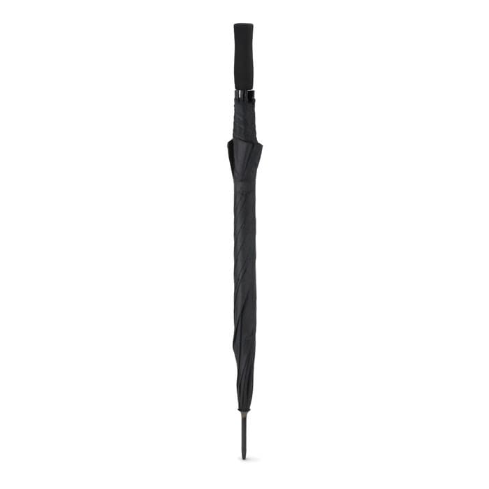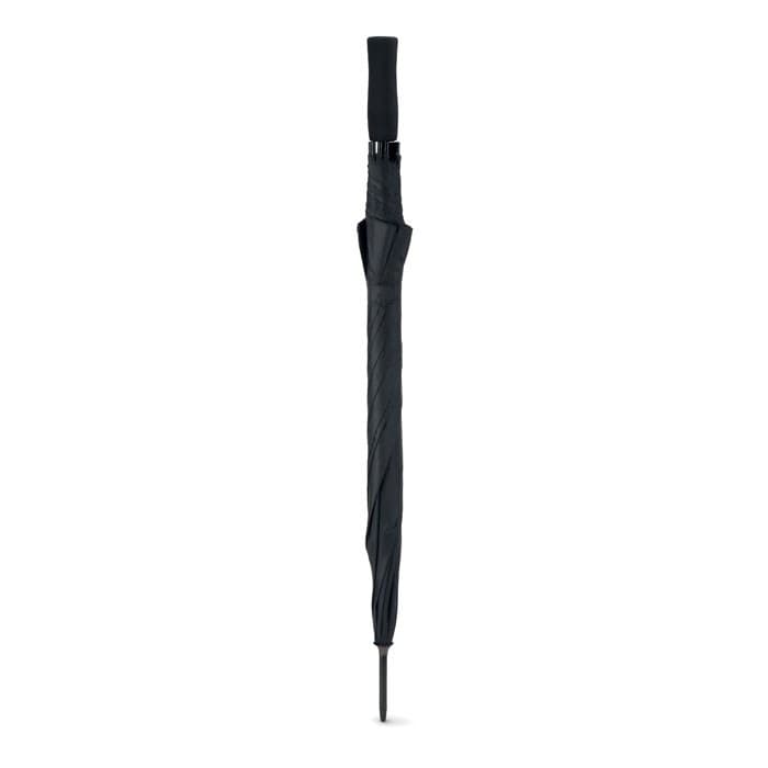 23 Inch paraplu van pongee met EVA handvat. 190T pongee. Zwart frame met kunststof zwarte uiteinden. Opent automatisch en sluit handmatig. Perfect voor paraplu's bedrukken.