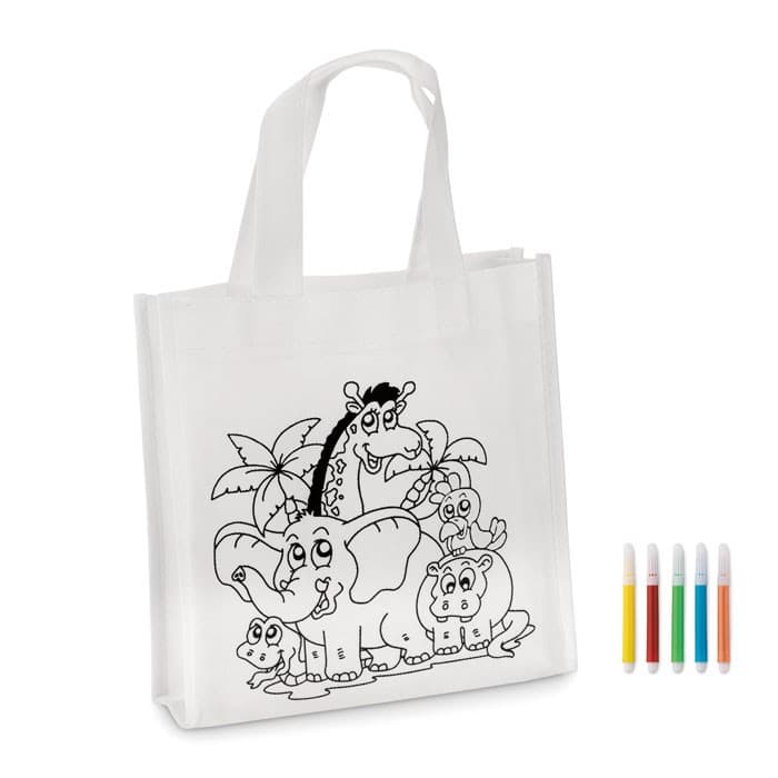 Non-woven boodschappentasje inclusief 5 viltstiften. 80 g/m².