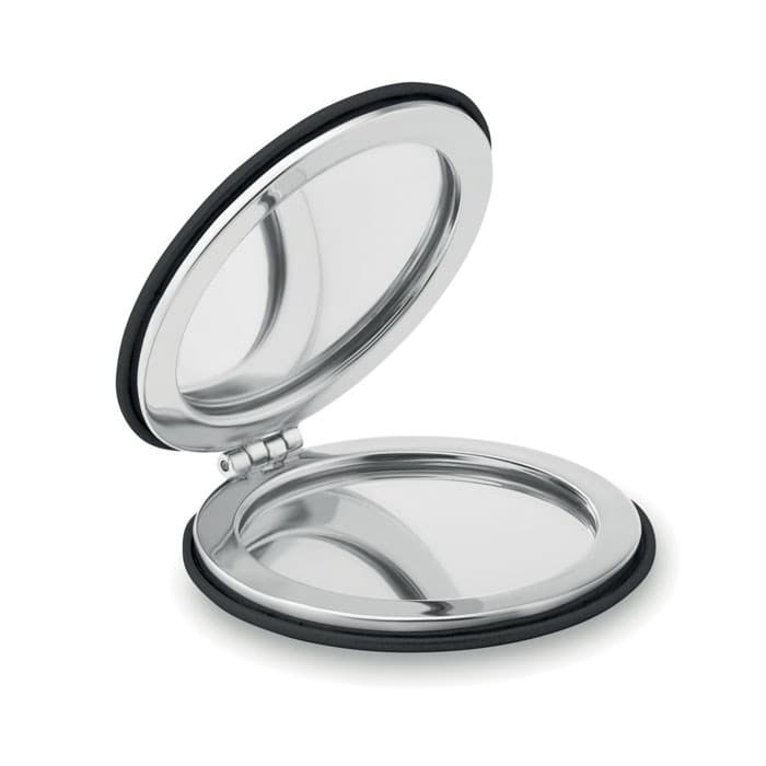 Ronde dubbele (niet vergrotende) spiegels met PU omslag en magnetische sluiting.