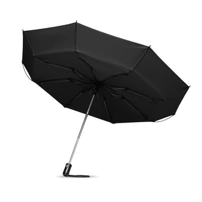 23 Inch opvouwbare reversible paraplu van 190T polyester met aluminium steel en zwart ABS handvat. Baleinen van fiberglas. Opent en sluit automatisch. Inclusief bijpassend etui.