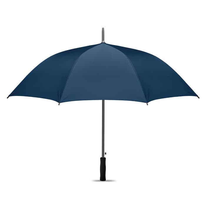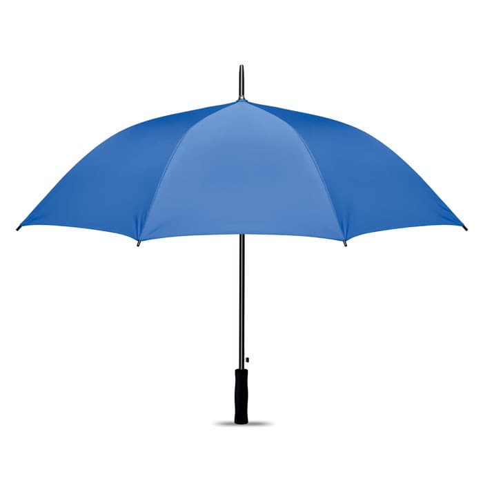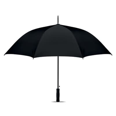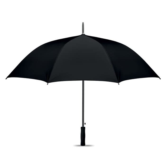 Paraplu, 27 inch. 190T polyester met zwarte steel en baleinen. Zwart kunststof uiteinden. Panelen in kleur, binnenkant met zilveren coating. EVA zwart handvat. Opent handmatig.