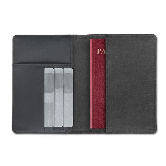 Anti-skimming (RFID) portemonnee / paspoorthouder in 2-tone polyester.