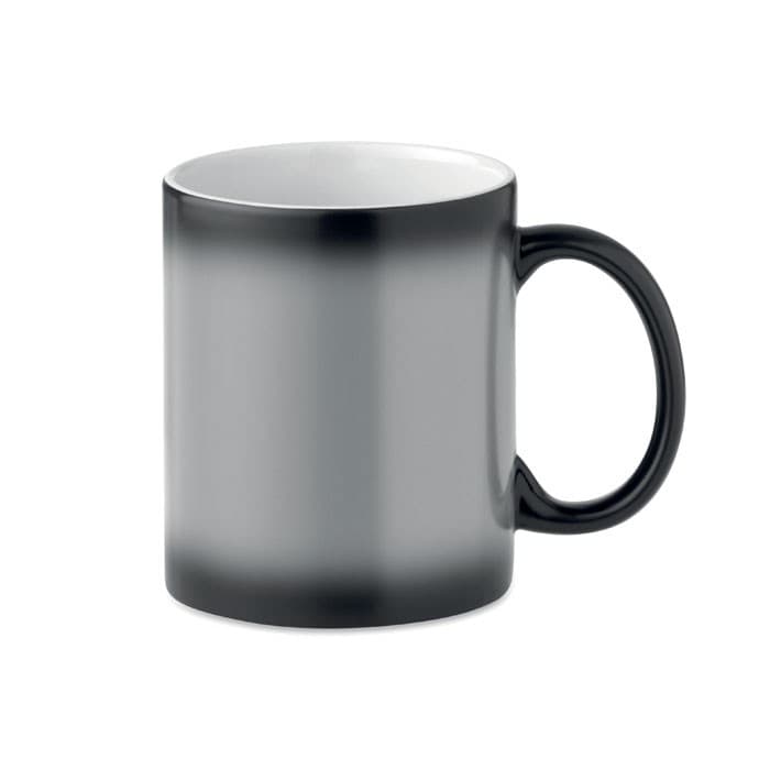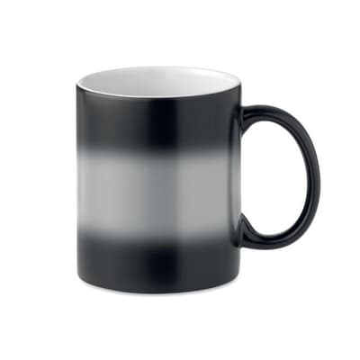 Keramische mok met speciale coating voor sublimatie. Door een speciale coating op het oppervlak van de mok, verkleurd de mok wanneer 40-50 ℃ vloeistof in de mok wordt gegoten. Wanneer de speciale coating transparant wordt, verschijnen uw ontwerp hieronder. Per stuk verpakt in wit kartonnen doosje.