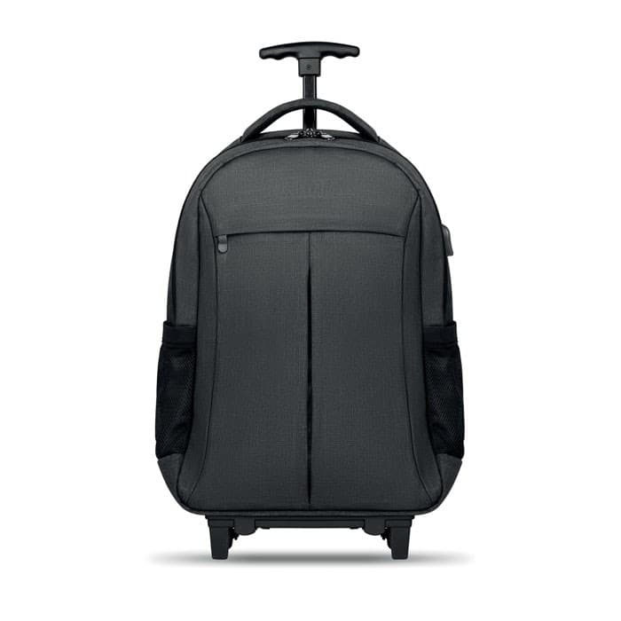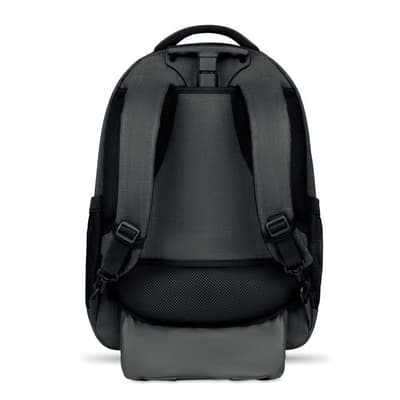 Materiaal van 360D 2 tone polyester. Hoofdvak met laptopvak en voorvak met ritssluiting. Gewatteerde rug en verstelbare schouderbanden. Inclusief beschermhoes voor de wieltjes van de koffer.