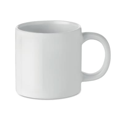 Keramische mok met speciale coating voor sublimatie. Inhoud 200 ml. Per stuk verpakt in wit kartonnen doosje.