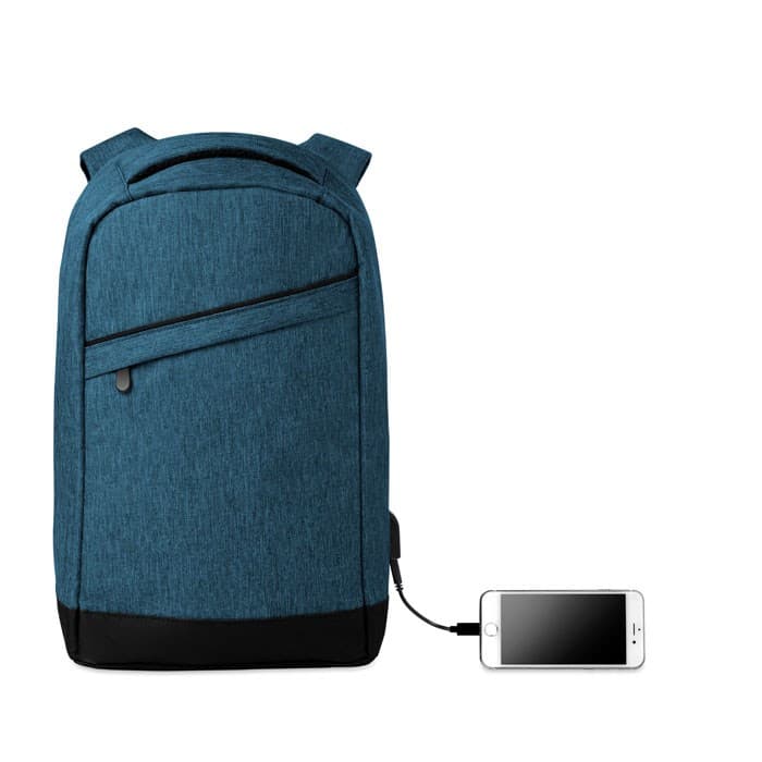 13 Inch laptop rugtas van 600D, 2 tone polyester met ritssluiting aan de achterzijde voor extra beveiliging en gewatteerde schouderband. Inclusief een USB oplaadkabel.