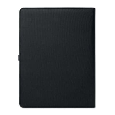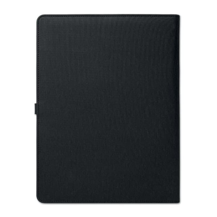 A4 schrijfmap met 4000 mAh PowerBank en diverse vakken, van linnen PU met sluiting. Met geïntegreerde micro USB/ type C kabel. Output: DC5V/1A. Inclusief 20 vellen gelinieerd papier. Inclusief zwart aluminium plaatje, ideaal voor graveren van je logo.