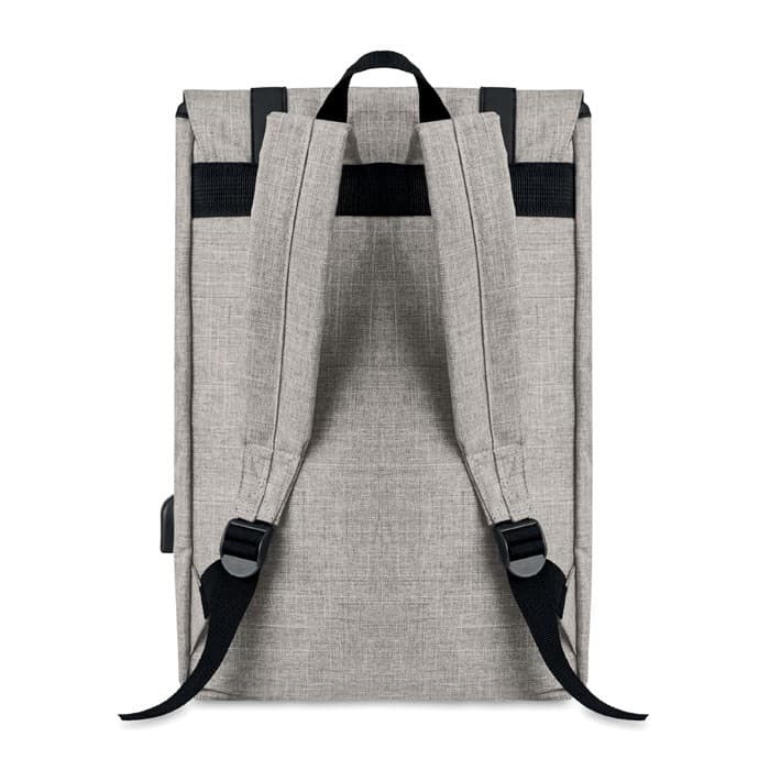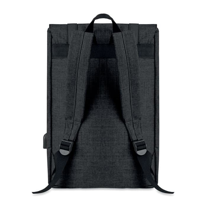 15 inch laptoprugtas van 2-tone polyester met 1 binnenvak voor 15 inch laptop en USB oplaadkabel. Inclusief magnetische sluiting en voorvak met ritssluiting. 600D polyester.