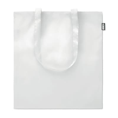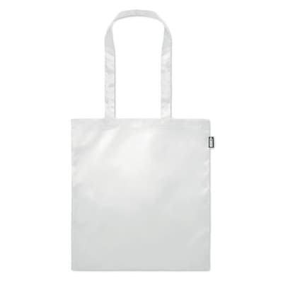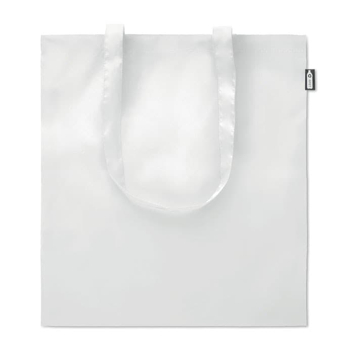 Boodschappentas van 190 RPET met lange hengsels. Eco-vriendelijk materiaal gemaakt van gerecyclede kunststof flessen.