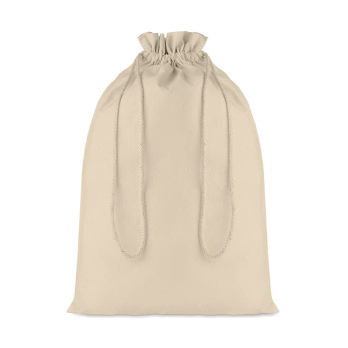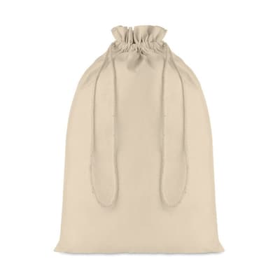 Groot formaat katoenen geschenkzak met trekkoordsluiting. Afmeting: 30 x 43 cm, 105 gr/m².