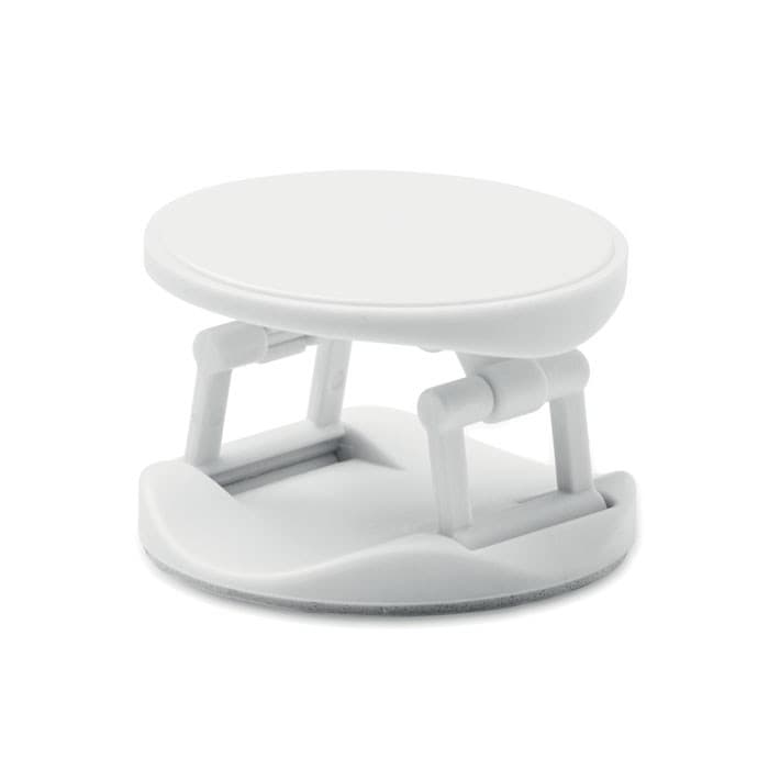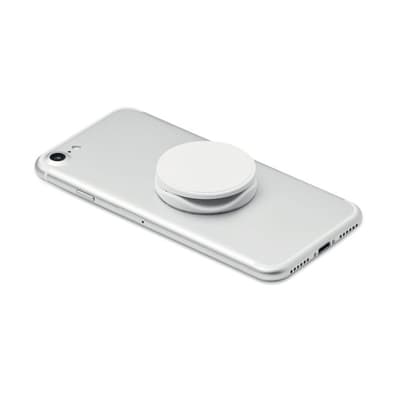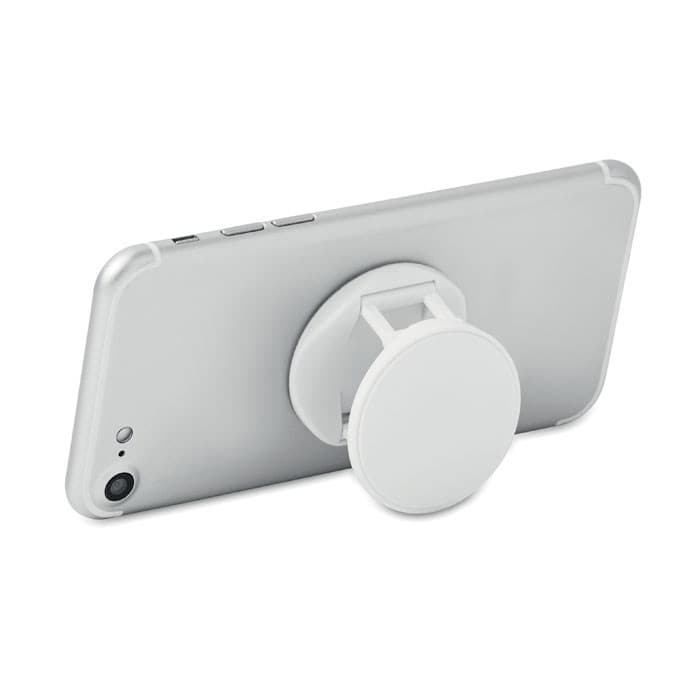 Ronde opvouwbare telefoonaccessoire van ABS met twee functies: telefoonhouder en telefoonstandaard. 3M sticker aan de achterzijde.