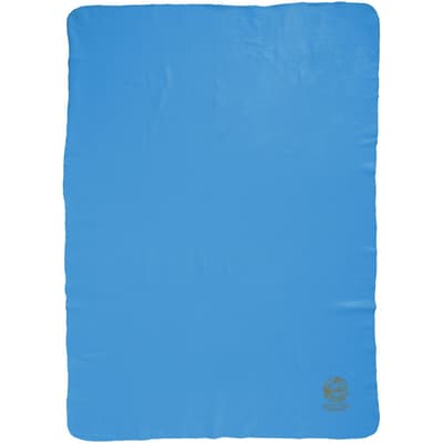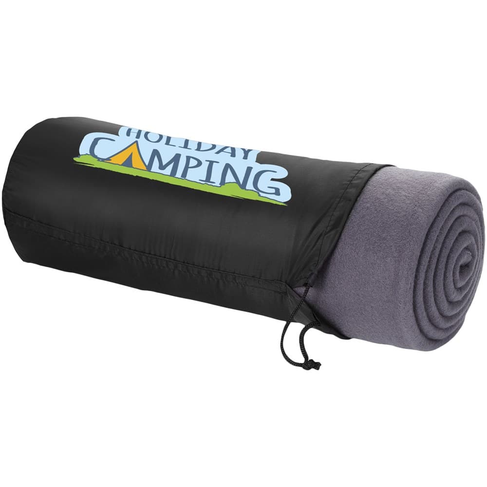 Reisdeken van RPET fleece, verpakt in een handige RPET polyester hoes. Het deken heeft een gewicht v