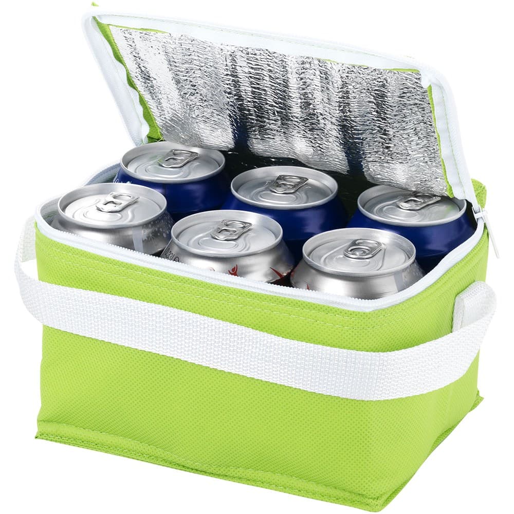 Koeltas voor 6 standaard blikjes met een aluminiumfolie beklede binnenkant. 80 g/m2. Isolatie mater