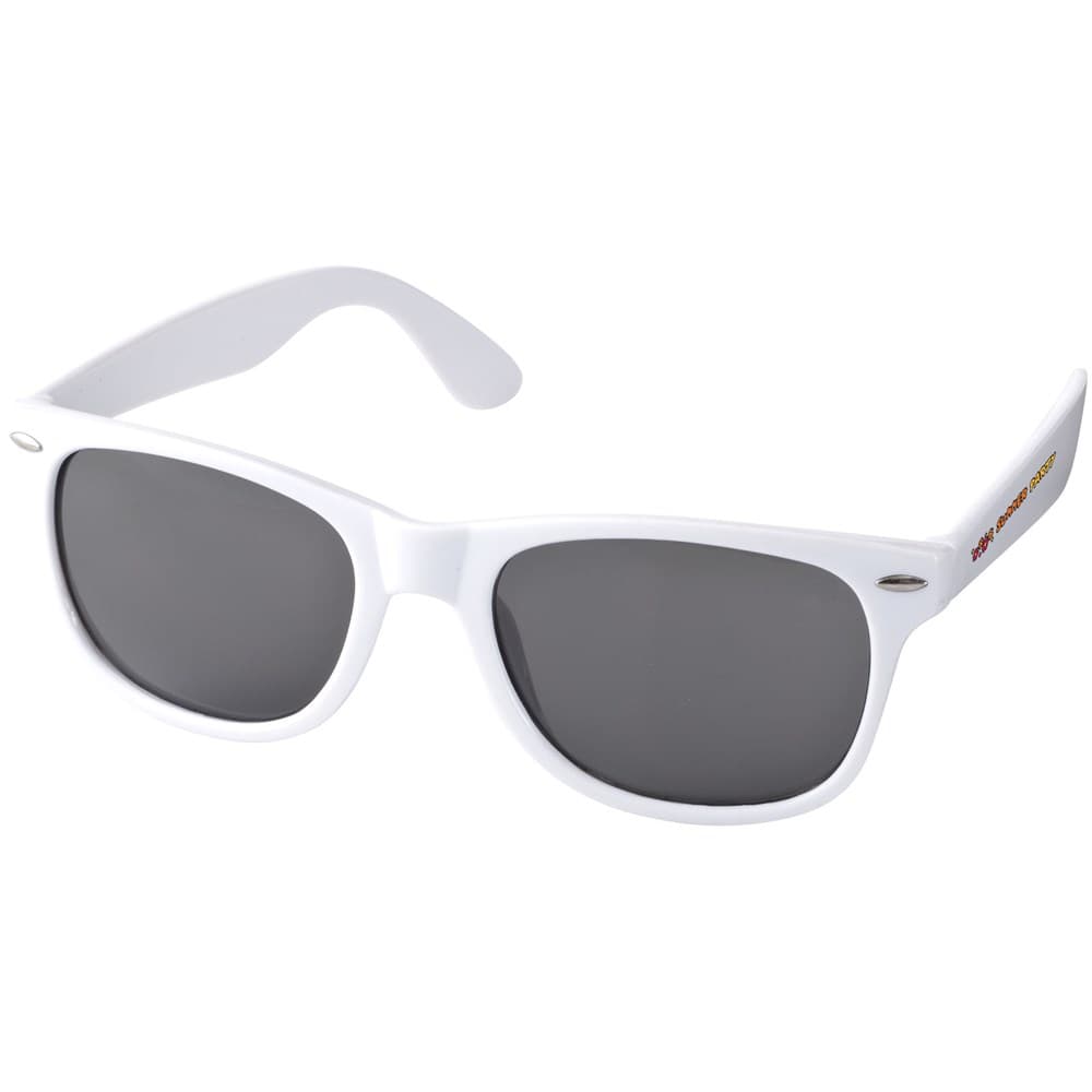 Deze retro-ontworpen zonnebril is de ideale promotionele giveaway tijdens zomerfestivals, evenementen of andere zonnige buitenactiviteiten. Deze bril voldoet aan EN ISO 12312-1, heeft UV400 lenzen die zijn geclassificeerd als categorie 3, waardoor het de perfecte keuze is voor bescherming tegen fel zonlicht. Dankzij het materiaal van PC-kunststof is de zonnebril licht en comfortabel om te dragen. Perfect voor zonnebrillen bedrukken met een logo of tekst.