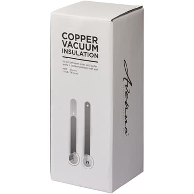 De Peeta is dubbelwandig. Roestvrijstaal met vacuüm isolatie. De binnenwand is van koper voor ultieme geleiding om drankjes tot maximaal 8 uur warm te houden en koud tot maximaal 24 uur. Voorkomt condensatie aan de buitenkant van de beker. Deze drinkfles is lekvrij en ideaal om mee te reizen. Geschikt voor de meeste koffiebekerhouders. Inhoud 500 ml. Geleverd in een Avenue geschenkverpakking.