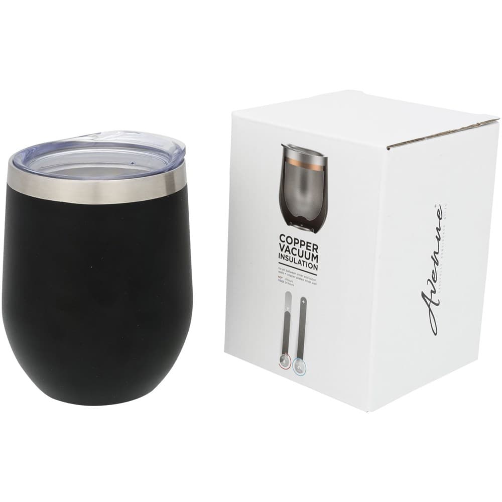 De Corzo koper vacuüm geïsoleerde beker heeft een dubbelwandige vacuümconstructie met koper isolatie, waarin uw drankje 6 uur warm en 24 uur koud blijft. De constructie voorkomt condensatie aan de buitenkant van de beker. Eenvoudige klikdop voor gemakkelijk drinken. Met spraypoedercoating op de buitenkant. Brede opening voor comfortabel vullen en schenken. Capaciteit is 350 ml. Gepresenteerd in een Avenue geschenkverpakking.