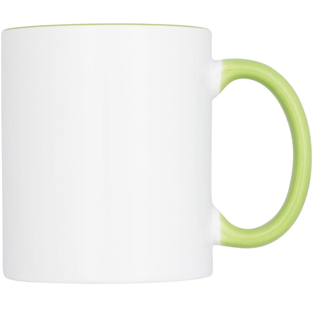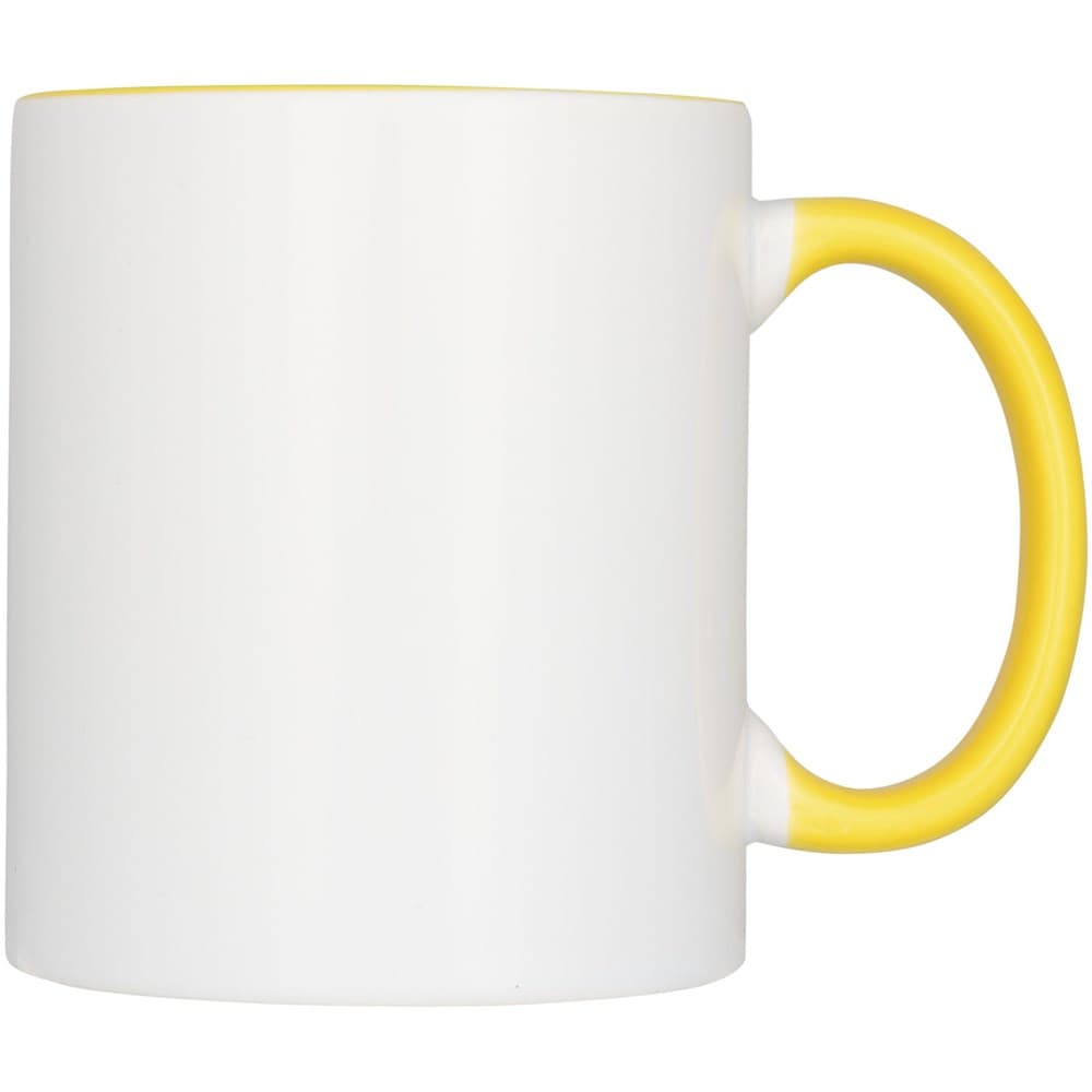 Deze keramische mok met klassiek design heeft een speciale coating voor sublimatie. De mok heeft een gekleurde binnenkant met oor in bijpassende kleur. Vaatwasmachinebestendig volgens EN12875-1 (minimaal 125 wasbeurten) voor alle decoratiemethoden. Capaciteit is 330 ml. Geleverd in wit kartonnen doos.